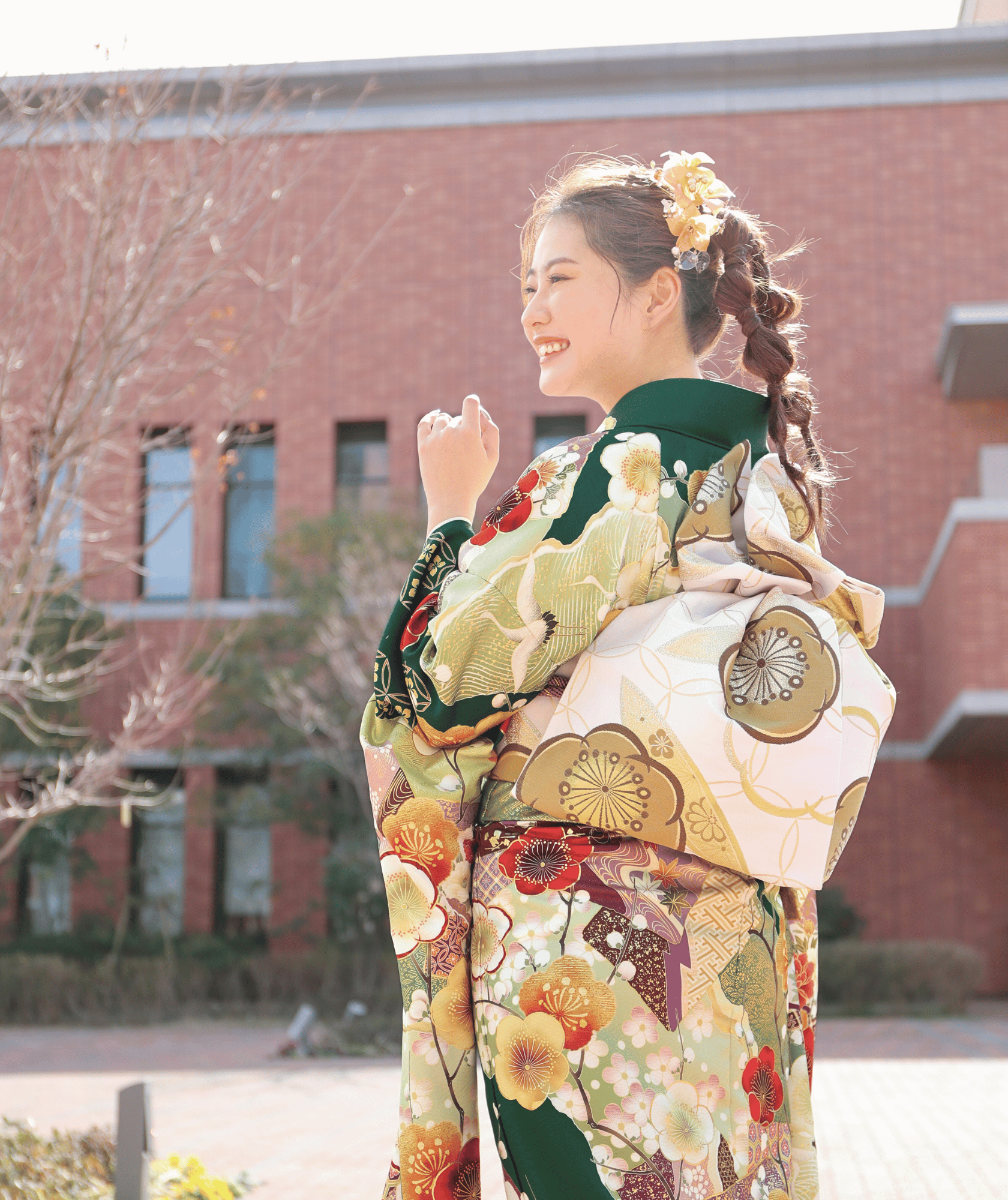 成人式や前撮りでは、真正面からだけでなく、横顔、斜め後ろ、そして後ろ姿と、あらゆる角度から写真を撮られます。